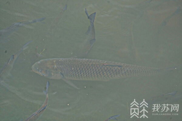 今天(5月7日)下午,南京建邺区长江岸边,出现成群两眼发红的鱼,有40厘米长左右,一排排沿着长江边来回游动。