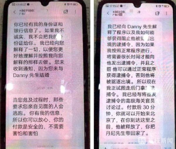 正当陈女士对此满怀憧憬时,2月下旬,丹尼发来消息称他因携带大量美金,在上海海关被扣了,需要交保证金。又过了几天,丹尼称自己被引渡到北京了。很快,陈女士接到了一个陌生号码发来的信息,称丹尼目前在北京海关,需要交15.4万元的罚款。15万多元不是一笔小钱,陈女士心中有些犹豫,可当她想到和丹尼在网上聊了一年多,感情深厚,最终还是决定筹钱汇款。