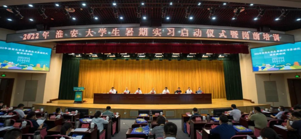 7月初,举办实习活动启动仪式,对实习大学生进行岗前培训。