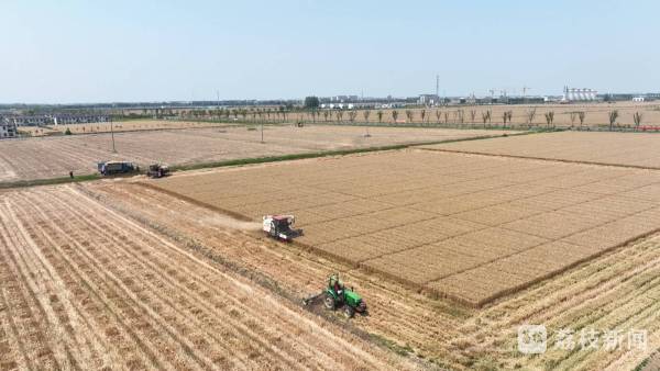 “今天试收了一部分,预计产量在1100多斤,这个产量我非常满意,也达到了我的预期。明天再上六个收割机,争取三天之内把小麦抢收完毕,颗粒归仓。”新庄镇种粮大户陈允乐告诉记者。