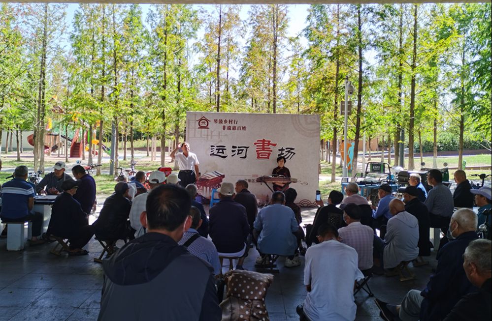 乡村是非遗传承的主要阵地。推进非遗保护利用,对于全面推进乡村振兴具有重要意义。为传承好非遗,助力乡村振兴,2022年年初,宿迁出台《宿迁市“乡村书场”建设三年行动计划(2022—2024年)》,提出按照分步实施、逐步推进的原则,依托现有的场所,加强曲艺人才队伍建设,开展“书场”表演活动。乡音乡韵最关情,在“乡村书场”演出中,非遗传承人用“最宿迁”的乡音,以“书场”说唱的形式,将传统文化送到群众家门口。目前,全市“乡村书场”已建成固定场地50个,惠及群众20余万人。