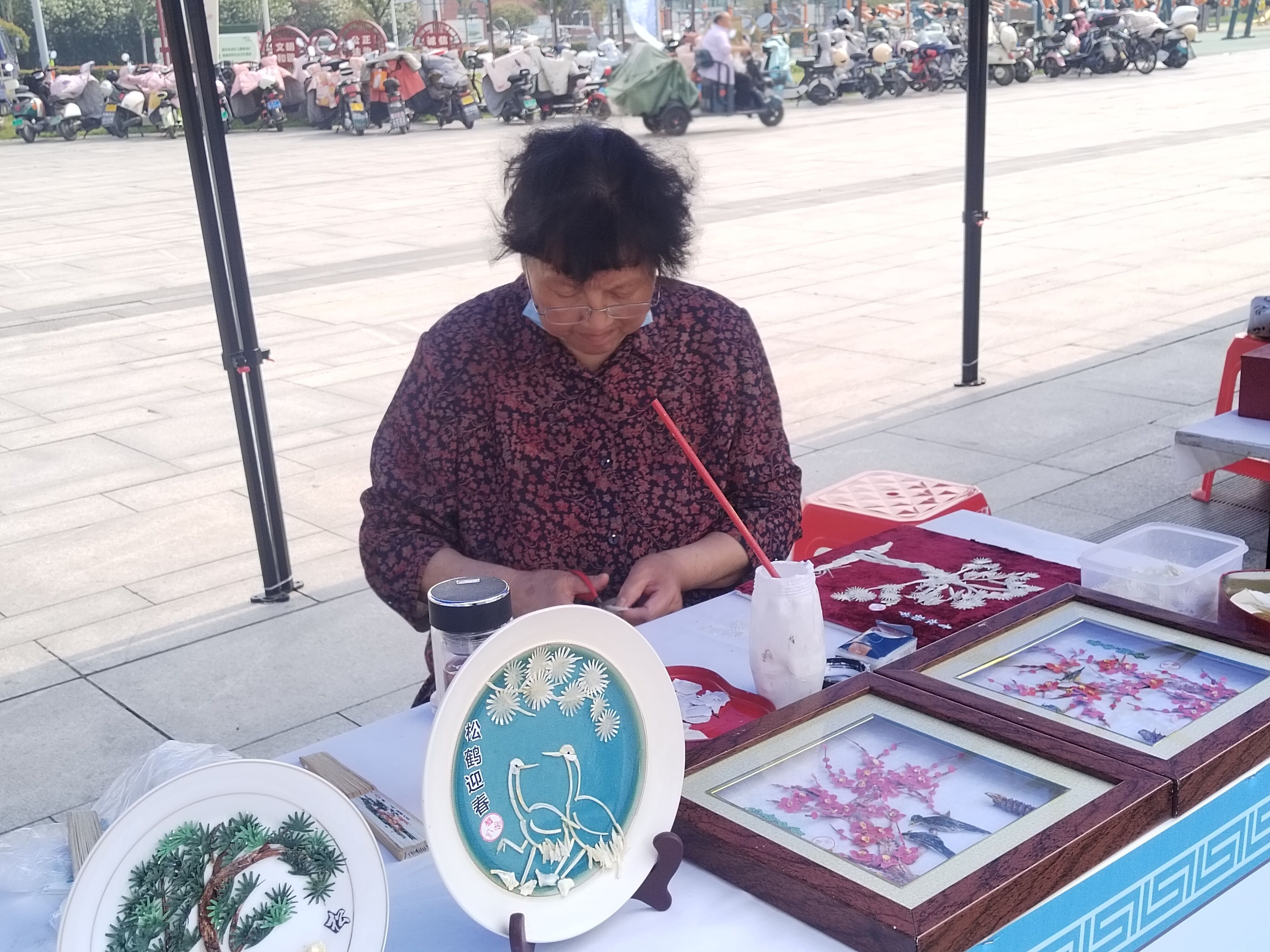 “像这样造型逼真的猫咪需要半个月才能完成。”瓷刻传承人代斌正在聚精会神地敲打瓷器表面,瓷盘上一只讨喜的狸花猫吸引了观众的注意力。活动现场设置40个展位,集中展示宿迁传统工艺、非遗美食、非遗文创等,精美的非遗物件吸引了众多群众驻足购买。