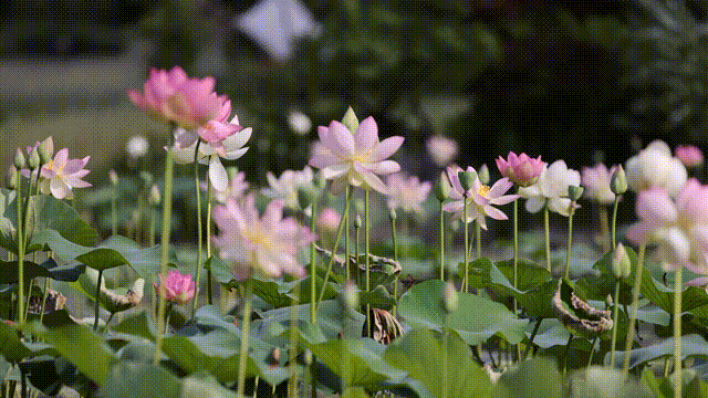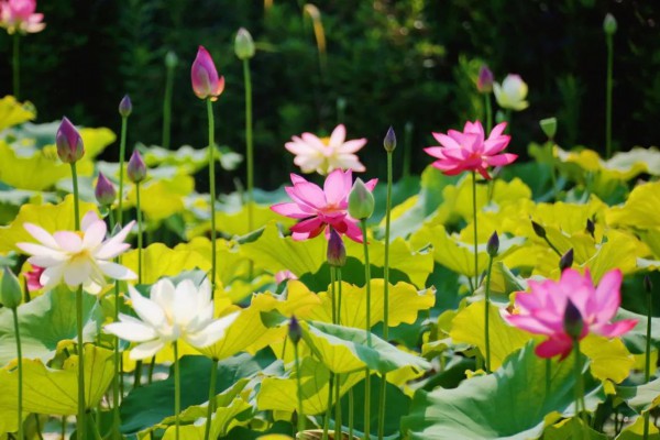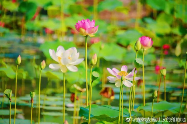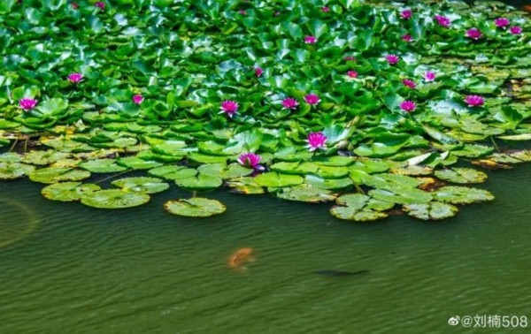 这里的荷花品种多样,一派“一水连天,荷叶田田”的景象。