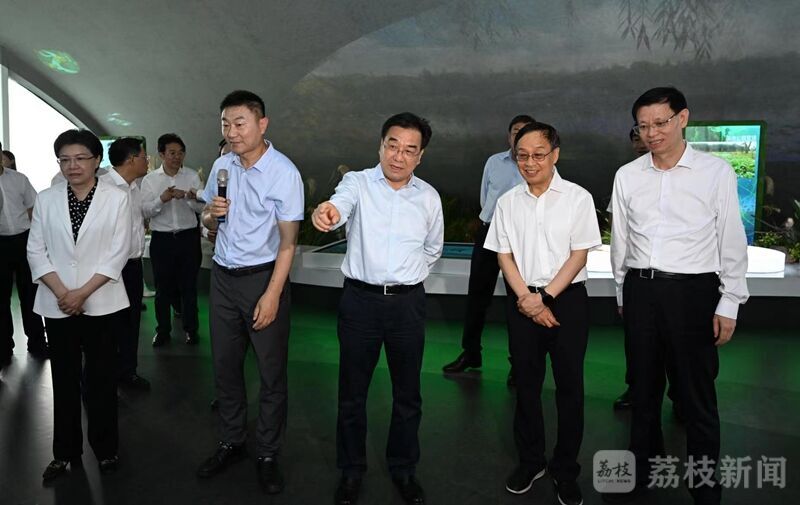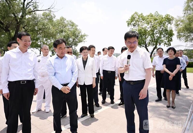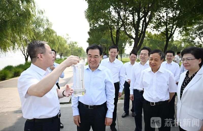 随后,大家乘船考察长江南京段生态保护,听取有关工作汇报,了解滨江风光带鼓楼片区亲水平台建设和历史文化保护利用情况。沿途水清岸绿、碧波荡漾,江豚不时跃出水面,一幅山水人城和谐相融的美丽画卷迎面而来。在下午召开的专题会议上,信长星带领与会同志认真学习习近平总书记关于推动长江经济带发展的重要讲话重要指示精神。与会同志观看了总书记视察南通五山地区滨江片区和主持召开全面推动长江经济带发展座谈会的新闻视频,部分省委常委交流发言,省发改委(省长江办)汇报长江经济带江苏段高质量发展最新情况。