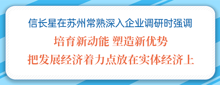 荔枝新闻讯 企业是推动高质量发展的主力军。6月15日,省委书记信长星深入苏州常熟的企业调研。他强调,要深入学习贯彻习近平总书记重要讲话精神,坚持把发展经济的着力点放在实体经济上,准确识变、科学应变、主动求变,一手抓传统产业转型升级,一手抓战略性新兴产业发展壮大,为企业创造更好的发展生态,不断培育新动能、塑造新优势,加快建设现代化产业体系。