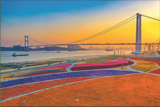 “下面,我们来到的是音乐花海广场,然而它的‘前身’是货物码头和砂石堆积场,环境脏乱不堪。”5月19日下午两点,江阴大桥下的音乐花海广场如各种花卉拼接的油画美不胜收,现场讲解人员谢菀桐向高质量发展调研团记者讲述广场的“前世今生”。