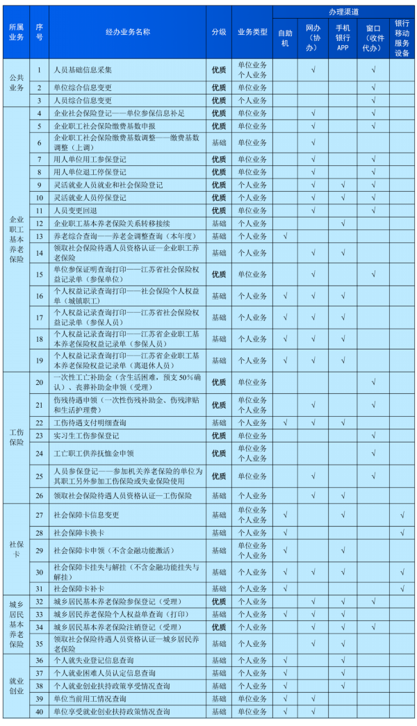 优质网点将额外增加单位用工参保登记、企业职工缴费基数申报、灵活就业人员就业和社会保险登记、城乡居民养老保险参保登记等18项业务,基本实现高频服务事项全覆盖。