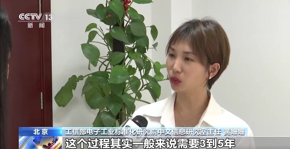 工信部电子工业标准化研究院中文信息研究室主任 黄姗姗:(从)做筛查整理,提交国际提案,然后在国际标准化组织进行审查,然后再反馈到国家标准来同步更新,这个过程其实一般来说需要3到5年,就一个字从提交到进标准需要3到5年。