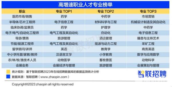 职业层面,据智联招聘数据显示,医药市场/销售、半导体/芯片工程师等职业的高校毕业生需求增速高于全行业,榜单中职业的高校毕业生招聘增速均高于20%。网友议论的“生化环材”天坑专业之一的材料科学与工程,成为半导体/芯片的主要对口专业,折射出“冷门专业”也可能有热门职业前景。此外,汉语言文学、英语、数学等专业的就业方向指向留学顾问、中小学家教等“教育口”职业。