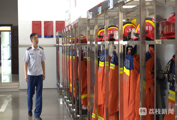 在南京消防救援支队特勤大队一站,南京消防救援支队特勤大队一站站长助理赵杰正在仔细检查着救援设备和消防服,确保每一次救援工作都能顺利执行。他说:“作为消防救援一线的共产党员,我们始终保持枕戈待旦的状态,始终保卫人民群众生命财产安全。”