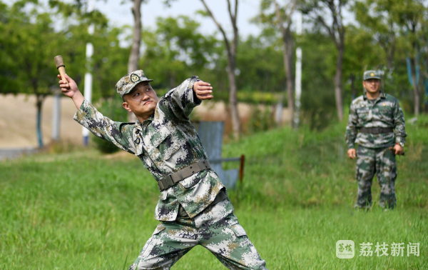 七月的丹阳骄阳似火,演兵场上热浪滚滚。7月12日上午,在江苏省丹阳市民兵训练基地,一名教员正指导基干民兵进行手榴弹投掷训练。从7月11日起,镇江军分区组织丹阳市、句容市和镇江高新区的70多民兵基干民兵,在丹阳市民兵训练基地组织开展为期25天的军事训练。