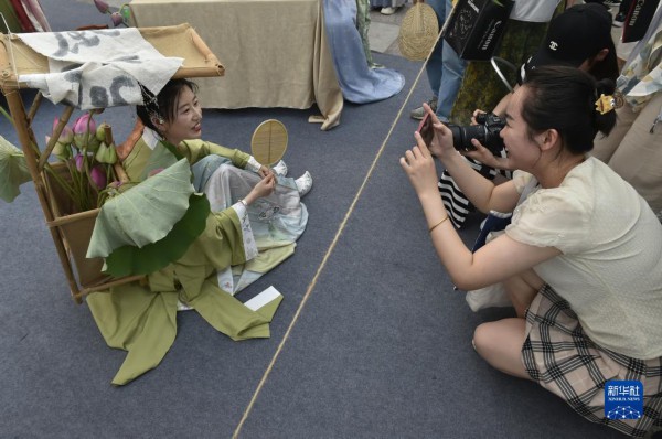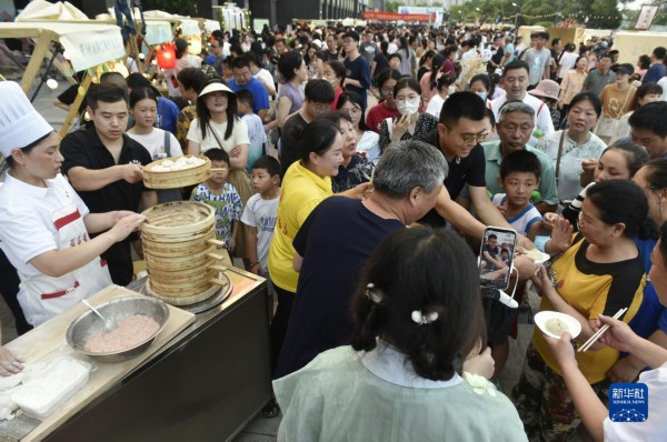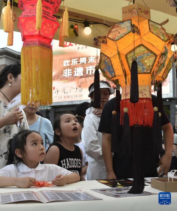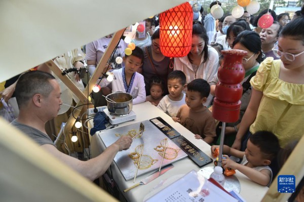 7月14日傍晚在开封市开元广场拍摄的“非遗市集”现场。
