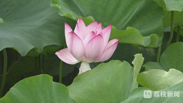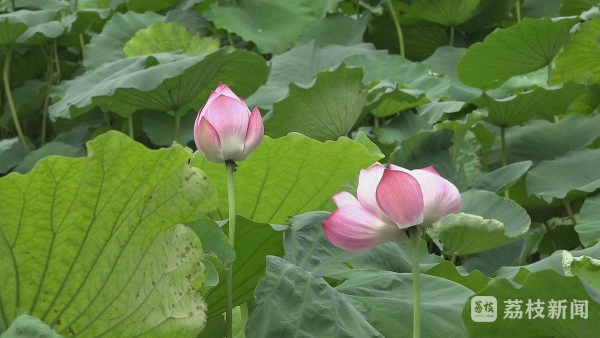 在韩家荡天荷源景区内看到,池塘的水面上已铺满荷叶,一朵朵娇艳的荷花从层层叠叠的绿叶中钻出,迎着骄阳次第绽放,绵延的荷塘、碧绿的荷叶、娇艳的荷花,交相辉映,构成一幅美丽的画卷,为夏日的韩家荡天荷源景区增添了亮丽的色彩。