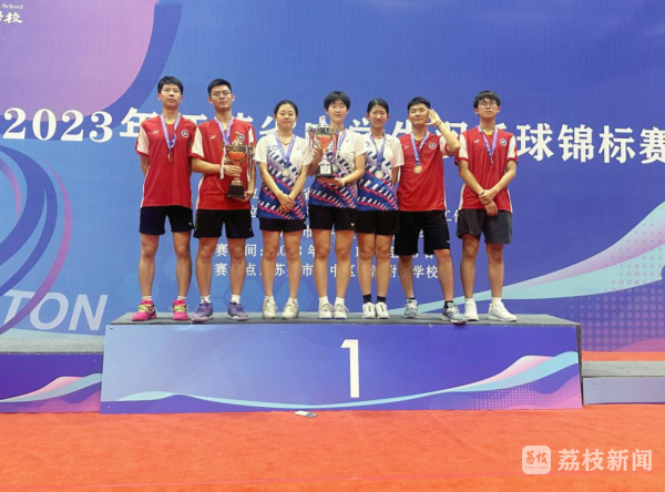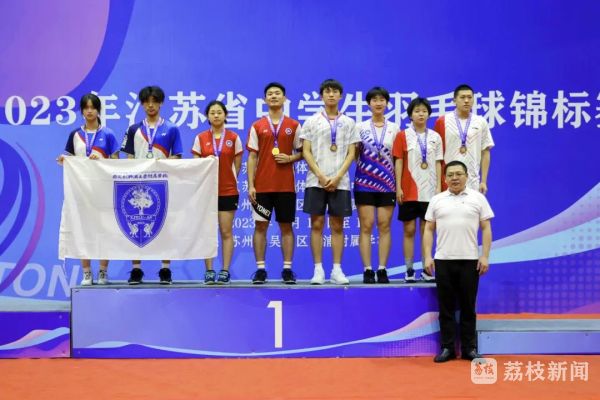 2023年江苏省中学生羽毛球锦标赛7月9日至15日在苏州举行。来自全省21所学校的102名青少年羽毛球运动员“羽”林争锋。由金陵中学河西分校倪庆荣副校长、褚新露老师和刘焕泉、邵恒超两位教练带领的,赵毅、史天羿、王浩、李晨熙、徐怿然、朱亭轩、王梦媛等七位同学组成的金陵中学河西分校羽毛球队经过七天角逐,收获了一金一银三铜的优异战绩。其中,在高中混合双打赛事中,来自金中河西高中部的赵毅、朱亭轩同学组成的混合双打队伍,摘获全省冠军!