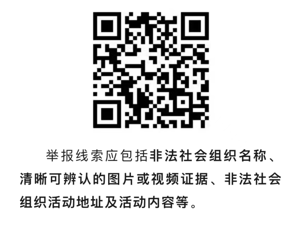 即日起至12月31日,社会各界发现在江苏省域范围内的非法社会组织及其活动线索时,可以通过关注“江苏社会组织动态”微信公众号,回复“举报”或点击菜单栏“微互动”—“有奖举报”进行举报(或通过扫描二维码进入举报页面),举报线索应包括非法社会组织名称、清晰可辨认的图片或视频证据、非法社会组织活动地址及活动内容等。举报线索经查证属实的,民政部门将依法对相关非法社会组织进行取缔、劝散和公开曝光,并对相关线索举报人给予每件1000元奖励金。