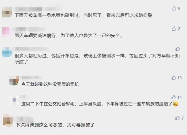 突然被疾驰而过的汽车溅了一身水