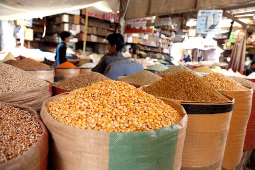 这是2022年6月29日在也门萨那拍摄的出售粮食的摊位。新华社发(穆罕默德·穆罕默德摄)