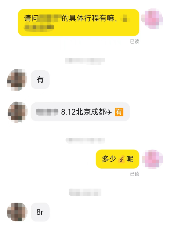 法治网研究院联系了多个卖家,询问是否可以提供明星具体的行程,收到的回复均表示可以。此外,有的卖家按次收费,根据不同明星收费几元到几十元不等。有的卖家则打包售卖,一次花费200元,就可以提供400次信息,单次收费仅0.5元。
