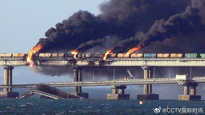 克里米亚大桥横跨刻赤海峡,俄乌冲突爆发至今,大桥已多次遭袭。第一次袭击发生在去年10月8日。当时,大桥公路桥上一辆卡车发生爆炸,导致与公路桥并行的铁路桥上一货运列车上多个油罐被点燃。大桥的公路和铁路通行一度中断。俄方在事发后不久便指责这是“乌克兰策划的恐怖袭击”,但乌方始终未公开承认。今年5月,马柳克承认在爆炸事件中采取了“某些措施”,但拒绝透露更多细节。7月8日,乌克兰国防部副部长马里亚尔首次承认乌克兰袭击了克里米亚大桥。