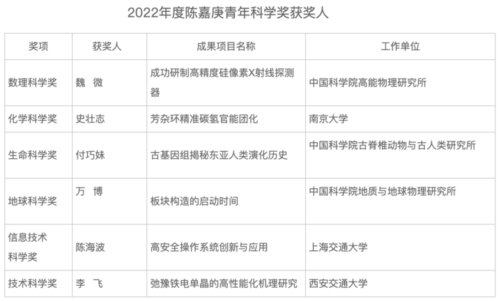 本次共有“复微分几何及其应用”等6个项目、中国科学院高能物理研究所研究员魏微等6人,分获2022年度陈嘉庚科学奖、陈嘉庚青年科学奖。