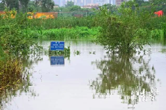据南方+9月11日20时许消息,记者到彭村附近经过村民指引到达长久坡村委会北界罗村,看到农田已经被淹没,周边水浸处已经设置警戒线。记者看到,该区域还有多个养殖场和广东省重点龙头企业。