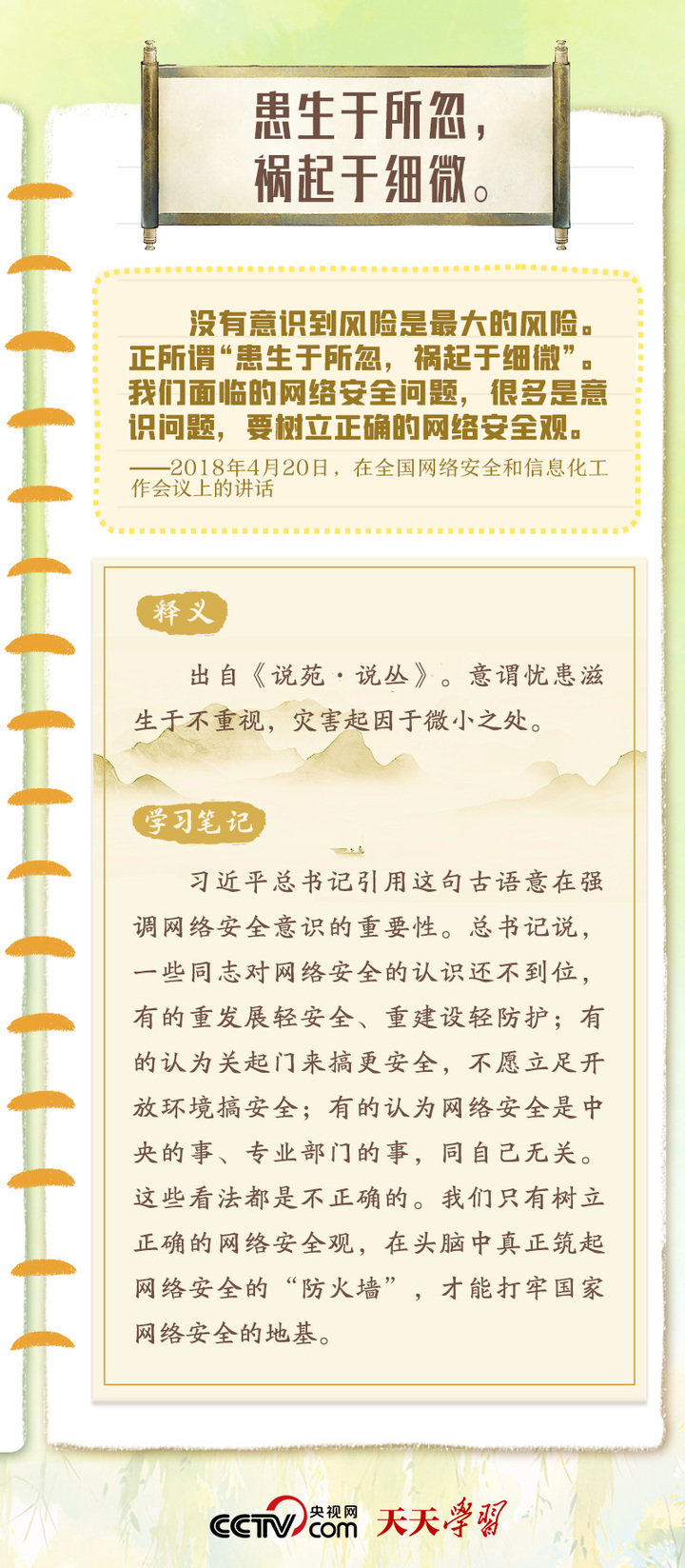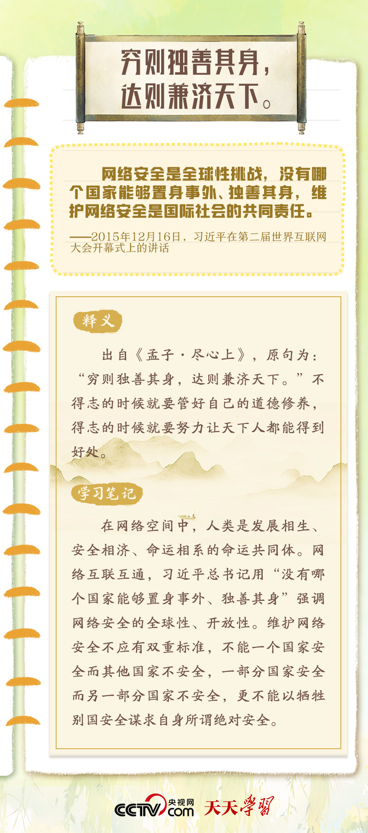 习近平总书记重视网络安全工作,曾多次在讲话中以典明理,深刻阐释网络安全工作的重要意义。“网络安全宣传周”到来之际,央视网《天天学习》特梳理总书记关于网络安全的用典,与您一起学习领悟。