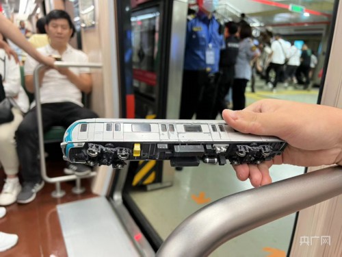 昨天,许多与陈曦年龄相仿的年轻人也专程来“时光列车”打卡,他们当中有不少是地铁迷,相比于感受内饰的变化,“重度”爱好者们更关注每一阶段轨道交通列车型号。16岁的黄明(化名)昨天拿着一个北京轨道交通4号线列车模型来体验:“每个车厢都有相对应的一个北京地铁历史上的车型,DKZ叫电客组(电动车组车款),SFM是代表是青岛四方制造的。我是从很小的时候就开始喜欢地铁,之前8日到18日试运营的话,8日当天首发的话我是没赶上的,后面连续几天因为人太多,我就没有怎么坐这个座椅,那几天从古城站一上车,座位立马就被抢完,说真的,这个座椅挺舒服的。”黄明说。