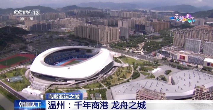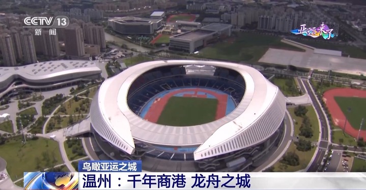 总台记者 梁烨:这个椭圆形的,如同一只巨龙眼睛的体育场就是温州奥体中心主体育场。它位于温州市龙湾区的中心区域,有画龙点睛的寓意,所以市民们也亲切地称它为“大龙眼”。换一个角度看,它还像一只展翅高飞的海鸥,也寓意着温州新老文化的交织和向东拓展的腾飞。杭州亚运会期间,这里将承办9场女足小组赛和1场女足四分之一决赛。