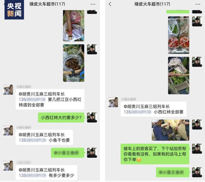 由于常常上门“推销”,胡贵川渐渐与许多餐厅、农家乐老板熟识,为了方便“卖货”,他建起了群聊,名为“绿皮火车超市”。每次在站点停靠,他就将大家携带的瓜果、蔬菜拍照发到群里,方便店主选购。