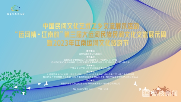 传承千年、奔涌千里的大运河,是中国南北经济文化交流融通的“大动脉”,蕴藏着中华文明延续不断的力量。9月20日—27日,“中国民间文化艺术之乡”交流展示活动——“运河情·江南韵”第三届大运河民族民间文化交流展示周将在苏州与线上共同举办。