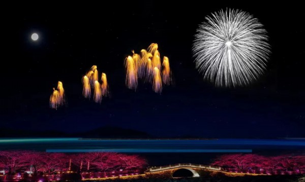 将现代科技融入传统文化,以丰富多彩的水上演艺引爆今年小长假夜游,为大家展现一场无比震撼的视听盛宴。让我们抢先看一波今年烟花大会效果图!