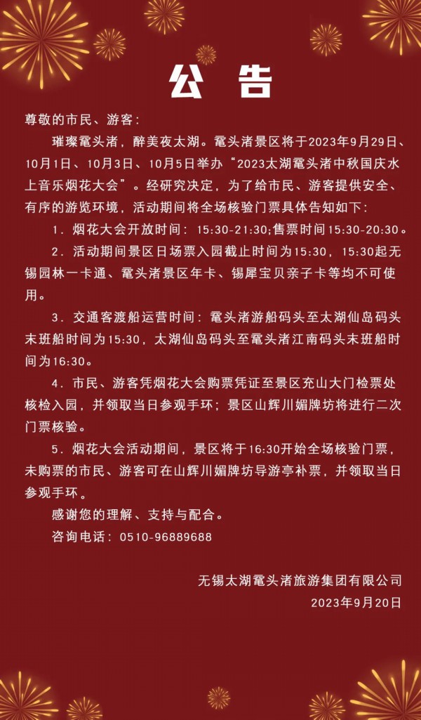 璀璨的礼花倾力绽放,绚丽的烟花尽情灿烂,太湖湖畔传来欢歌笑语。在这熠熠生辉的夜晚,让我们沉浸在太湖的诗意里,追寻无锡的千年风韵,享受一场如梦如幻的视听盛宴。
