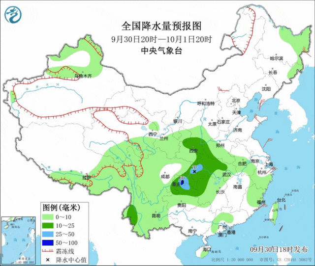 在这个全国大部分地区气象条件总体较好的节日期间,华西秋雨是天气舞台上不可忽视的搅局者。根据中央气象台首席预报员陈涛分析,虽然9月30日华西秋雨有所减弱,但10月1日、2日,随着降水带北抬,华西地区将有新一轮降水天气,四川东部、重庆、贵州北部、陕西南部、湖北大部、河南中南部等地的部分地区有中到大雨,局地暴雨。到3日白天,陕西、河南的降水将有所间歇。