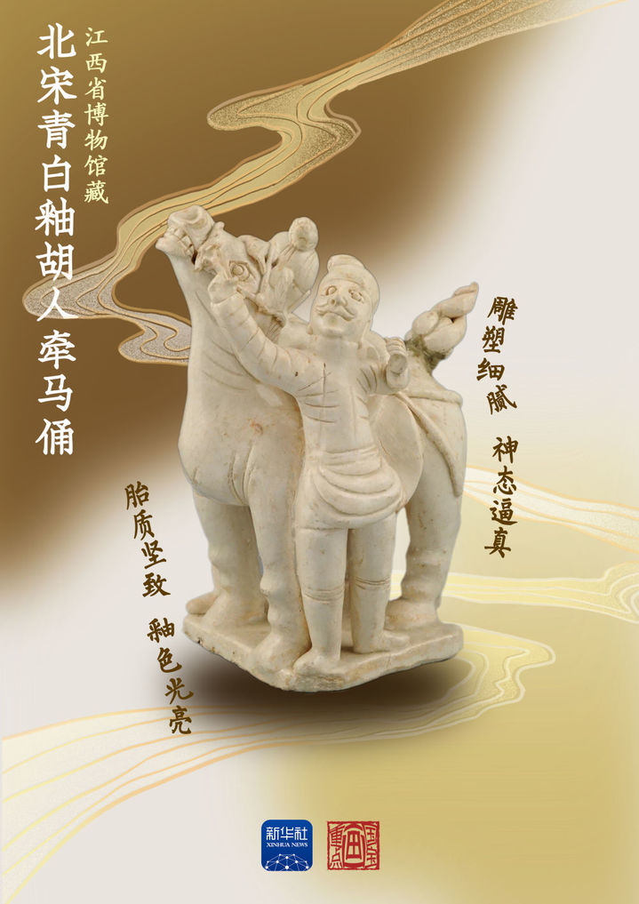 这件雕塑瓷生动刻画了胡人牵马的形象