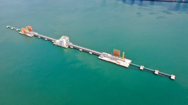 这是肯尼亚蒙巴萨油码头(2023年9月20日摄,无人机照片)。新华社发(中国交通建设股份有限公司肯尼亚蒙巴萨新建油码头项目部供图)