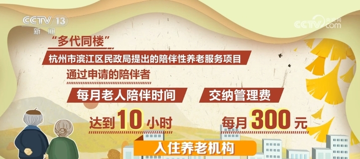 “多代同楼”是由浙江省杭州市滨江区民政局提出的陪伴性养老服务项目。通过申请的陪伴者每月只需达到10小时的老人陪伴时间,并交纳每月300元的管理费,就可以入住这家养老机构。