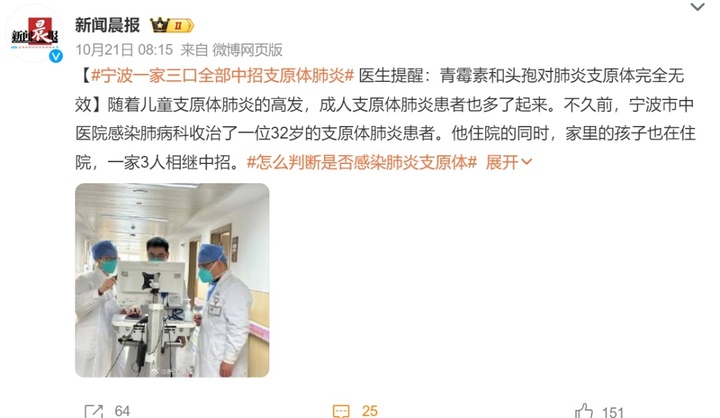 随着儿童支原体肺炎的高发,成人支原体肺炎患者也多了起来。
