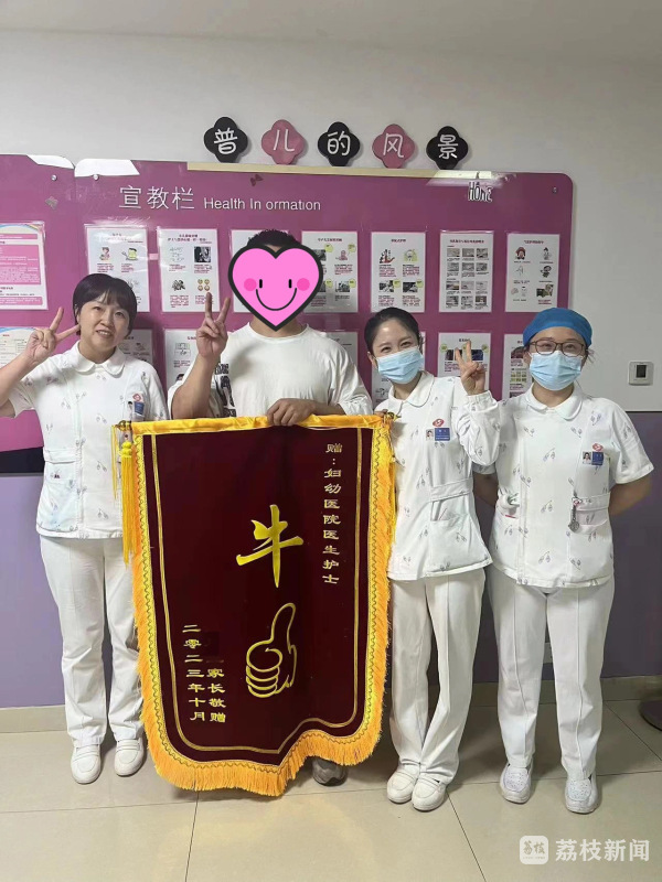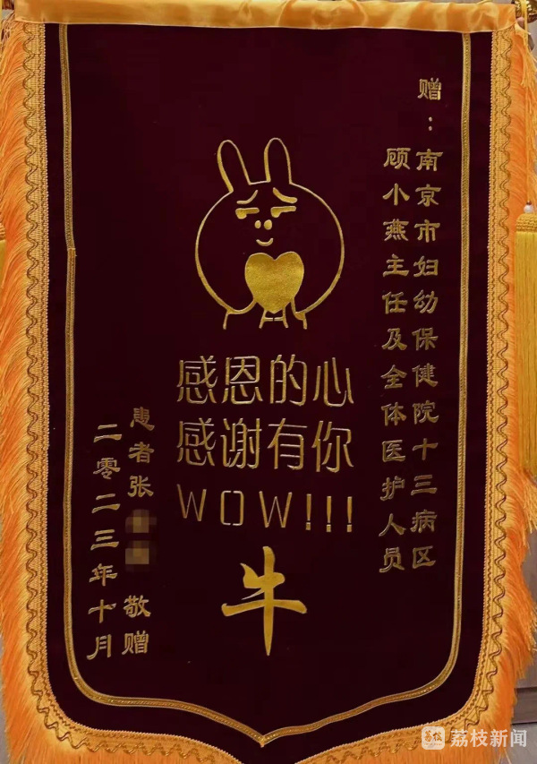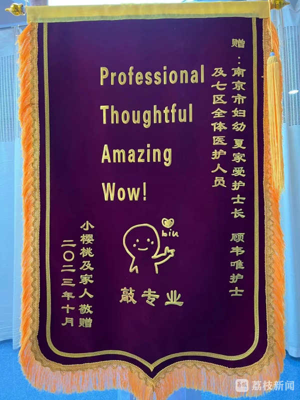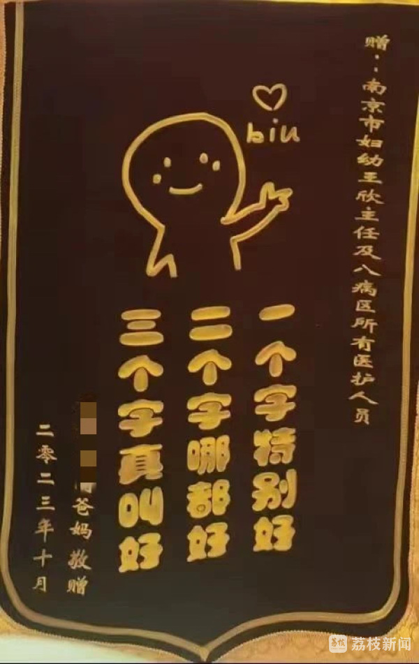近日,一面特别的锦旗被送到南京市妇幼保健院产房,打开锦旗的瞬间,大家都忍俊不禁:“太有才了。”“一张图就是一部剧。”信访行风办公室周滨主任看到也直呼,“形象地呈现了分娩过程的真情互动”! 给妇幼一个“大拇指”