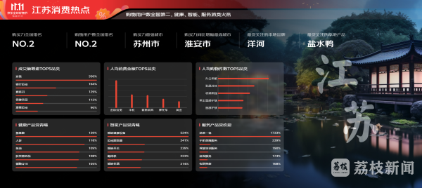 双11消费热潮不减,从某平台的数据来看,江苏省不仅在购买力方面位居全国前列,而且还呈现出爱健康好物、喜智能设备的消费趋势,彰显出蓬勃的消费活力。