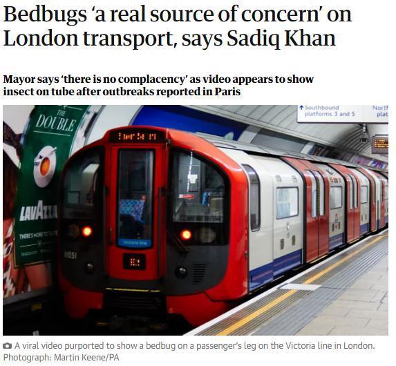 继法国之后,英国也出现了臭虫问题。火车和街道上的紧张情绪不断蔓延,尤其是伦敦,一些乘客因为担心臭虫,宁愿站着通勤。有英国民众表示,总觉得臭虫入侵到她的办公室、床铺只是时间问题,“作为一个爱干净的人,这真的是最可怕的噩梦。”