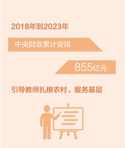 支持实施特岗计划。2018年到2023年,中央财政累计安排了533亿元,对特岗教师给予工资性补助,支持高校毕业生到中西部农村学校任教,为欠发达地区补充了大量的优秀师资。