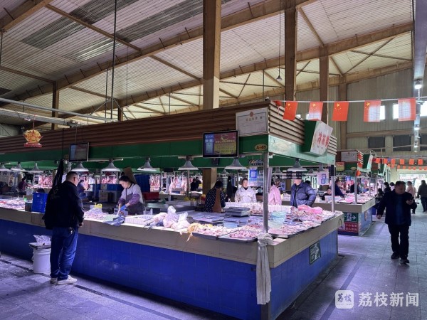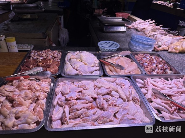 在刘姐菜篮子太平店 ,记者看到,果蔬、熟食等区域内的光源均为接近自然光的LED灯,而鲜肉售卖区域部分灯光,虽然不是常见的生鲜“美颜灯”,但是也存在光源偏暖的问题,市场管理人员表示,目前正在陆续更换灯具,月底前全部更换完毕。