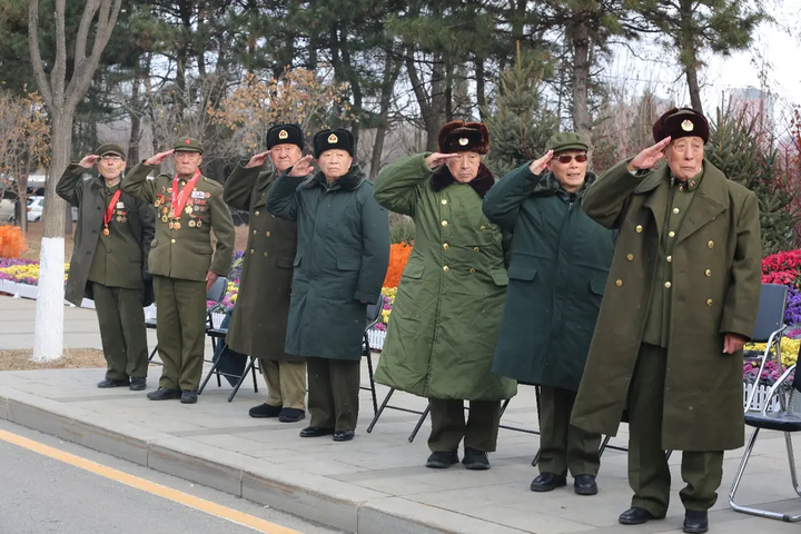 志愿军老战士向战友敬礼。图源自东北新闻网