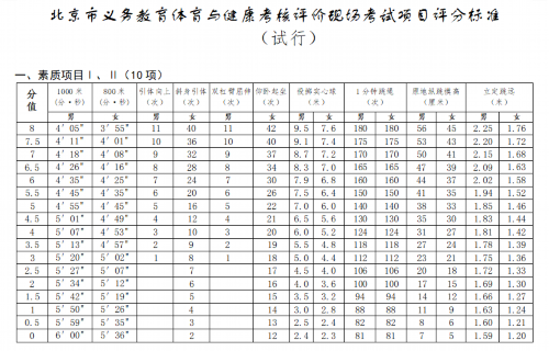 北京市义务教育体育与健康考核评价现场考试项目评分标准(试行)点击下载