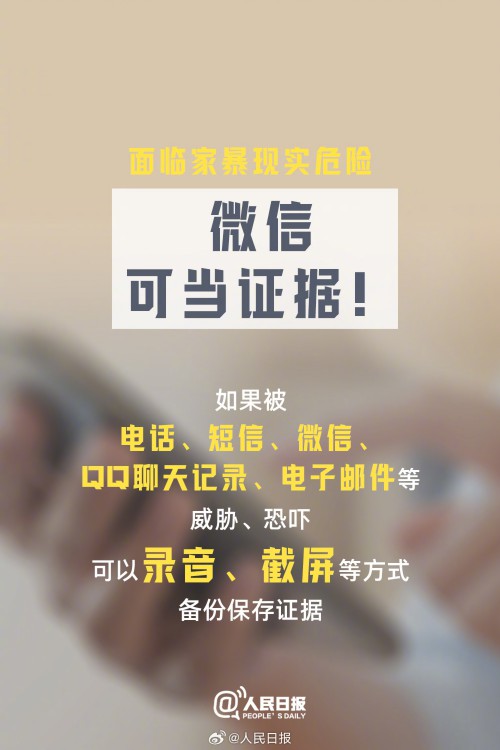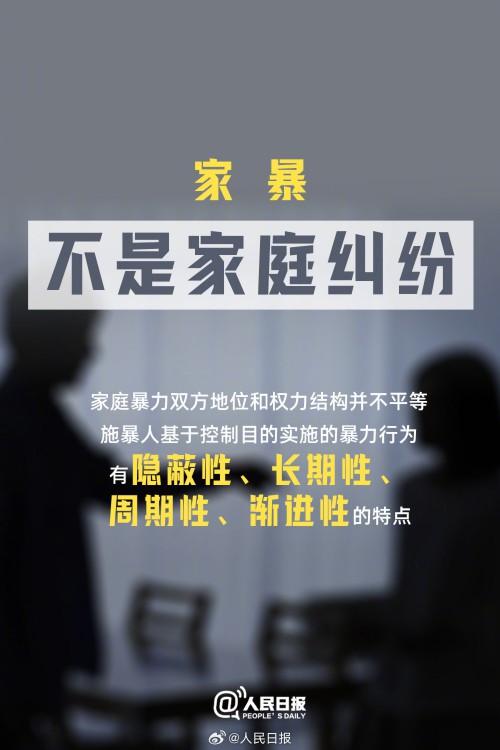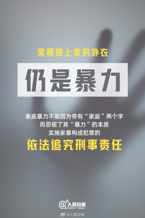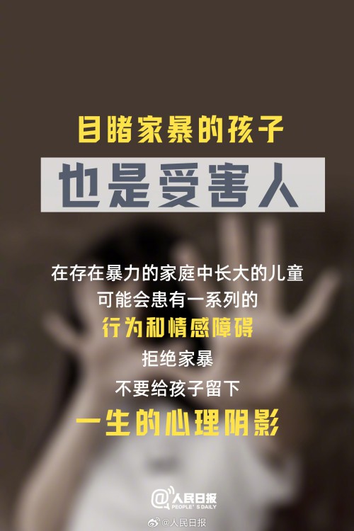 ①家暴不能因为有“家庭”两个字,就忽视了其“暴力”的本质;②经常性侮辱、诽谤、威胁等都算家暴;③目睹家暴的孩子也是受害人;④面临家暴现实危险微信可当证据。请记住,家暴不是“家务事”。今天,国际消除家庭暴力日,一起向暴力说“不”。
