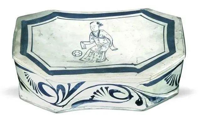 △宋代白釉黑彩孩儿鞠球纹枕,河北博物院藏。