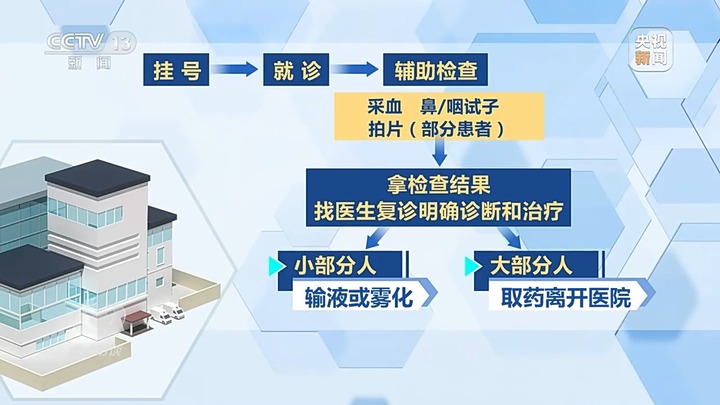 对一个初次到医院就诊的呼吸道疾病患者来说,大致要经历这样的流程:挂号,就诊,辅助检查:采血、鼻/咽拭子、拍片(部分患者),拿检查结果找医生复诊明确诊断和治疗,小部分人输液或雾化,大部分人取药离开医院。