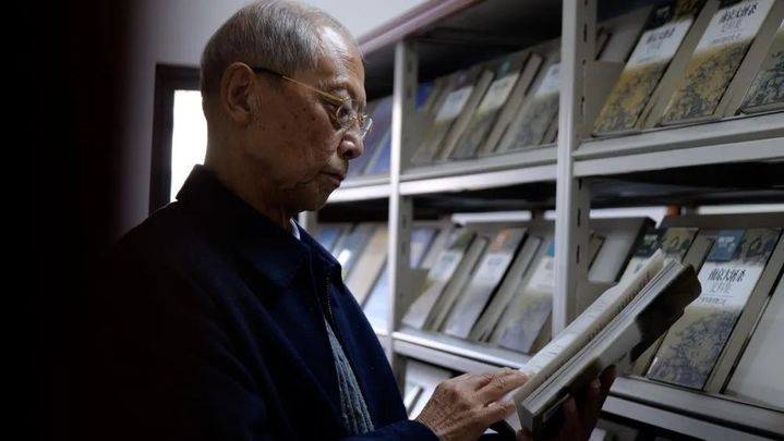 2023年12月6日,孙宅巍在图书馆翻阅资料。新华社记者林凯 摄