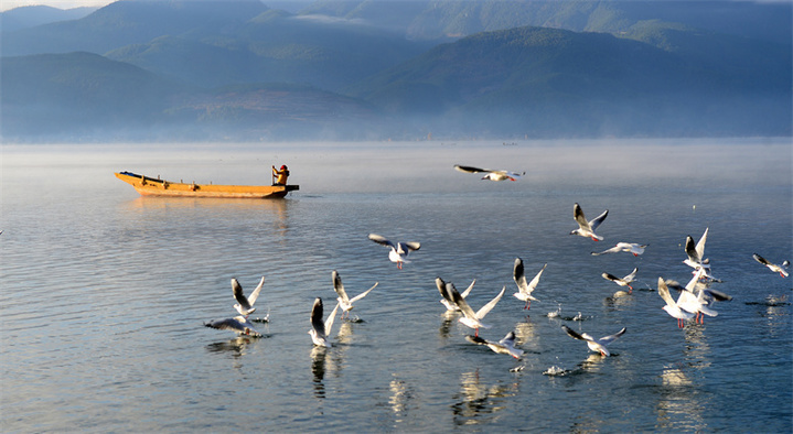 记者了解到,每年秋冬季节,泸沽湖便会以其优越的自然环境吸引大批越冬候鸟来此入驻。海鸥、红嘴鸥、白骨顶鸡、白眼潜鸭、凤头潜鸭……不同种类的候鸟在碧绿的湖面上盘旋、嬉戏,使得该区域的景色更添一抹亮色。