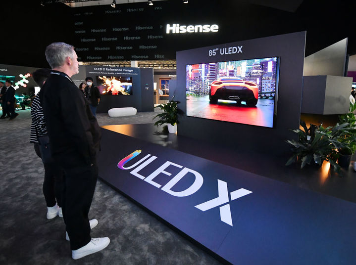 2023年9月1日,参观者在德国柏林国际消费电子展海信展区观看ULED X参考级影像电视。新华社记者 任鹏飞 摄